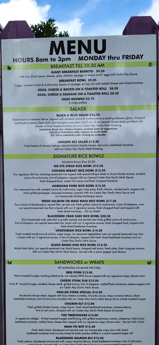Guests rave about the Fresh Mahi Mahi Rice Bowl, celebrated for its generous portions and incredible flavors. Patrons appreciate the cozy atmosphere shaded by Live Oaks, perfect for indulging in a warm meal. The friendly staff and quick service enhance the experience, while the emphasis on fresh, prepared-to-order dishes ensures a delicious visit every time. Don’t forget to explore their diverse selection of hot sauces for an extra kick!
